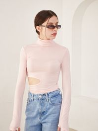 컷아웃 터틀넥 티셔츠 (라이트 핑크)