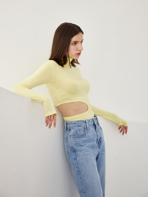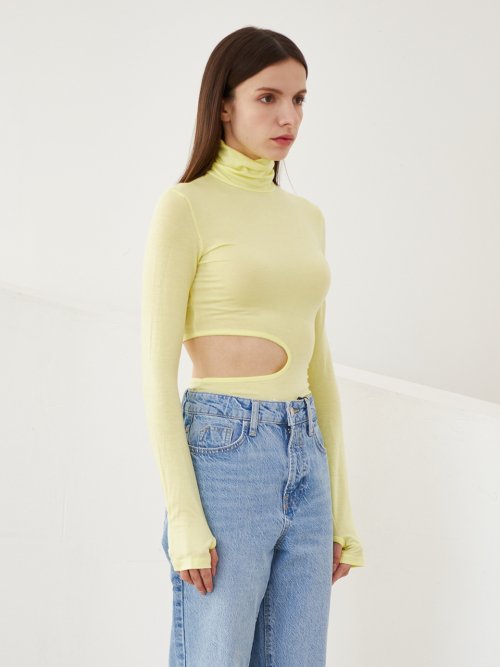 컷아웃 터틀넥 티셔츠 (옐로우)