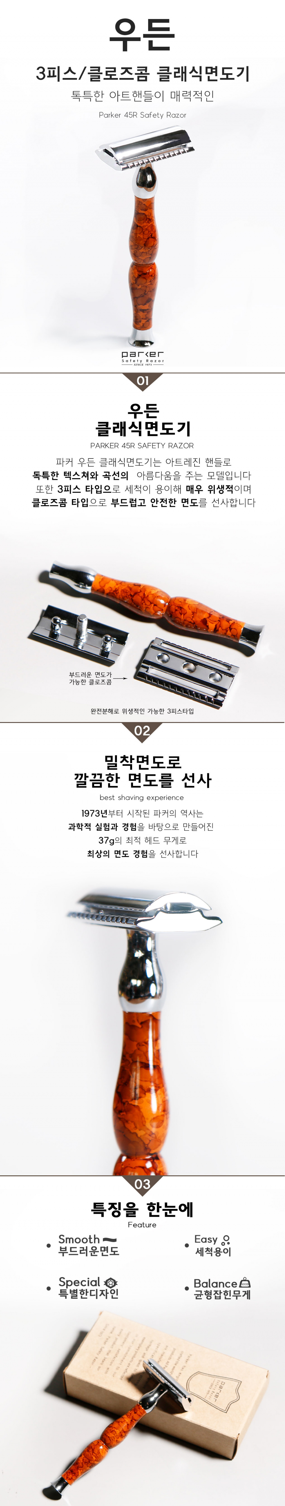 파커(PARKER)는 1973년부터 현재까지 반세기 넘게 프리미엄 클래식 면도기의 명성을 지켜온 브랜드입니다. 파커의 안전면도기 상품은 수작업으로 생산되어 클래식 면도기의 가치를 높이며, 광범위한 엔지니어링 및 품질 테스트 과정을 거칩니다. 고객의 니즈를 최우선시하는 파커의 혁신성과 우수성은 높은 평가를 받고 있습니다.