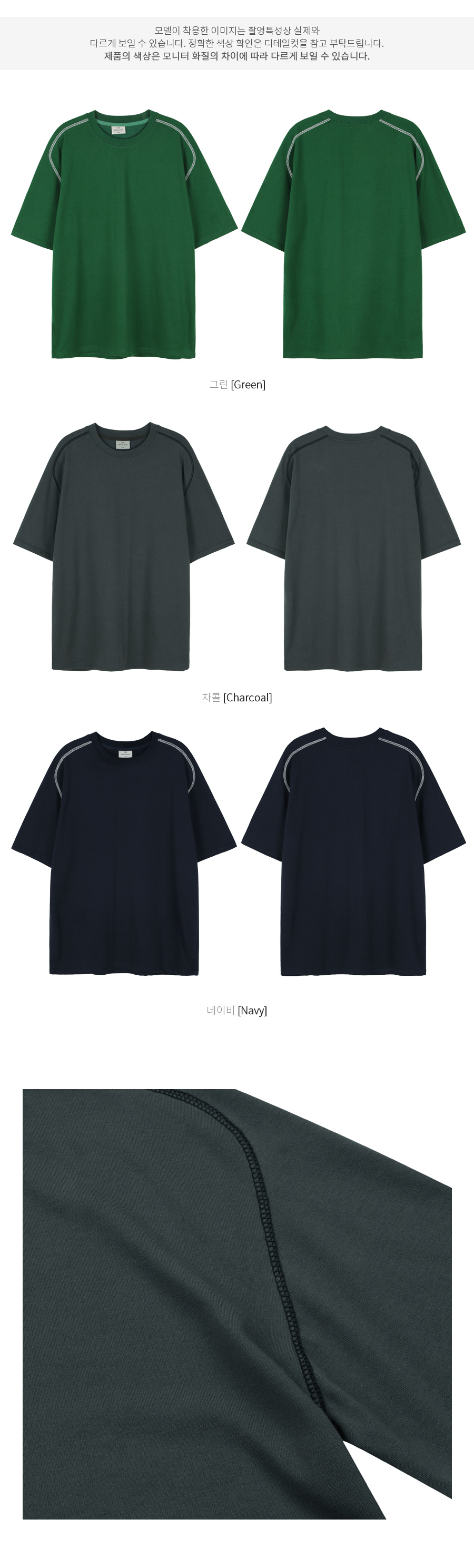 컬러 스티치 반팔티셔츠 차콜