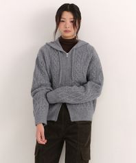 우먼즈 아란 케이블 니트 후디드 집업 [미디엄 그레이]