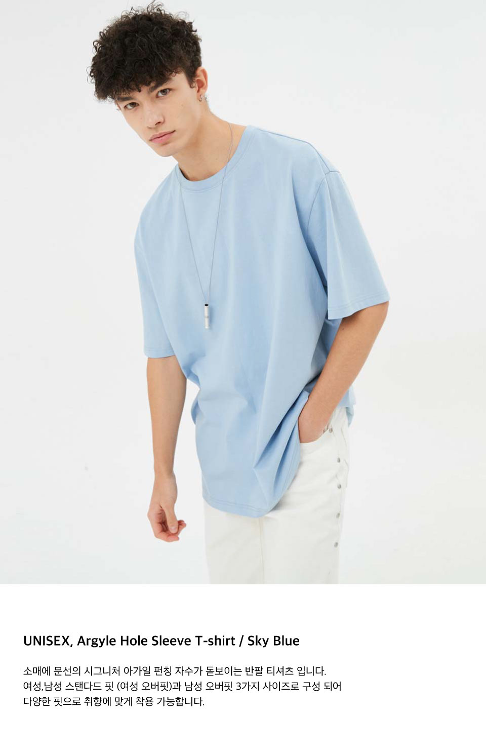 ESSENTIAL_UNISEX Argyle Hole Sleeve T-shirt [Sky Blue]