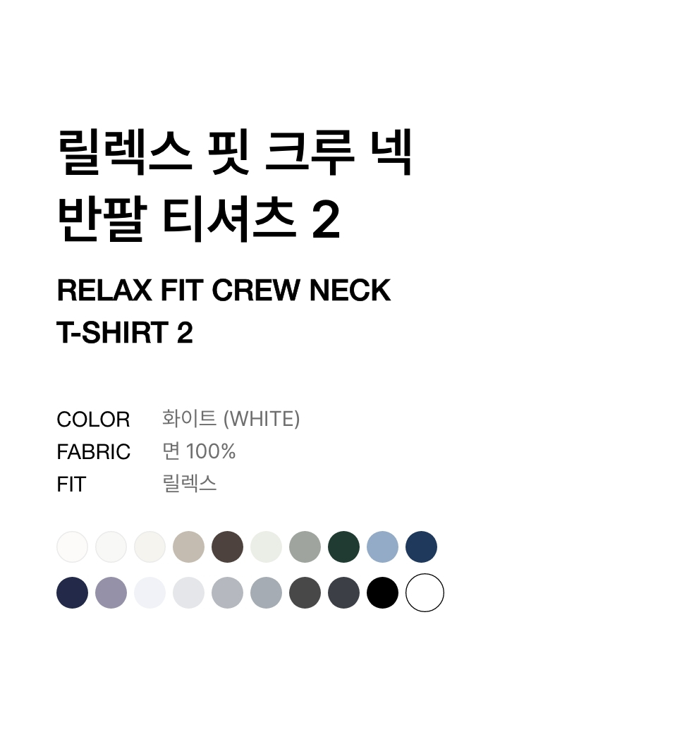 릴렉스 핏 크루 넥 티셔츠 2 [화이트]