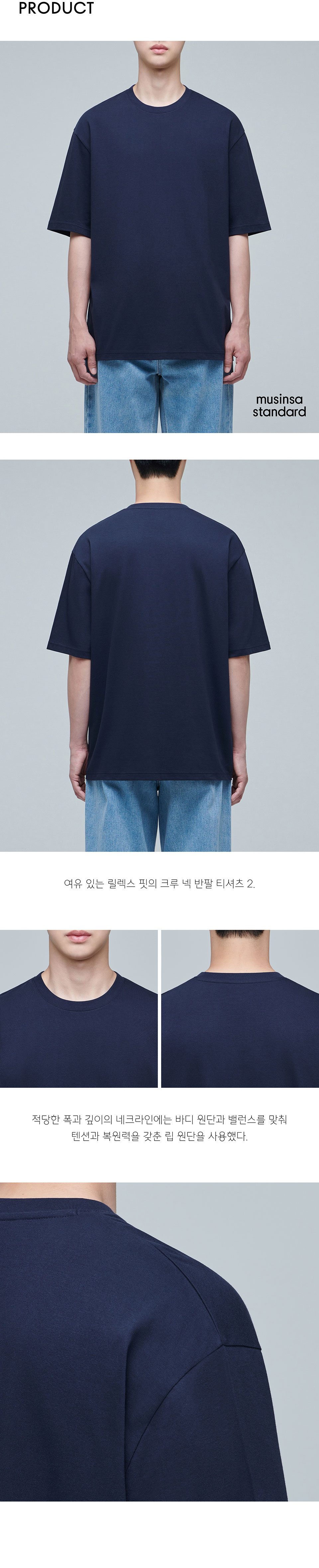 릴렉스 핏 크루 넥 티셔츠 2 [네이비]