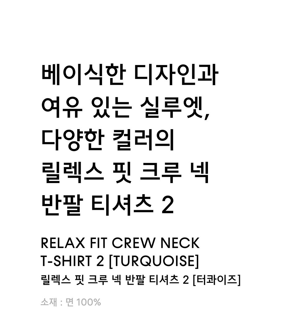 릴렉스 핏 크루 넥 티셔츠 2 [터콰이즈]