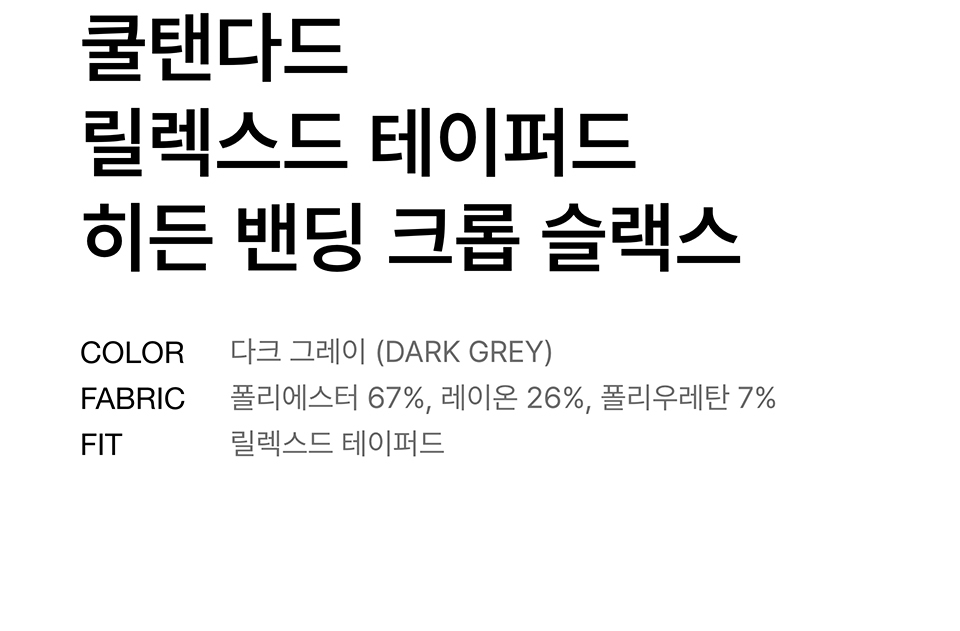 [쿨탠다드] 릴렉스드 테이퍼드 히든 밴딩 크롭 슬랙스 [다크 그레이]