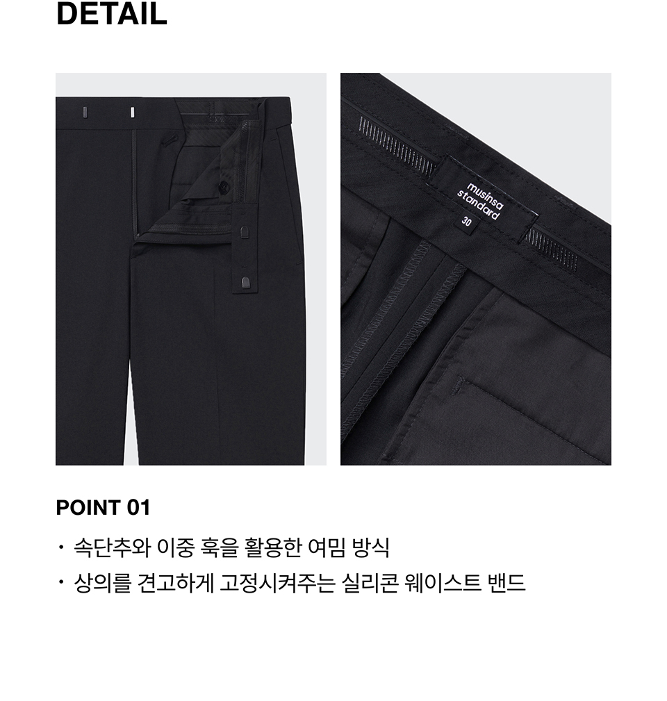 릴렉스드 테이퍼드 히든 밴딩 크롭 슬랙스 [다크 그레이]
