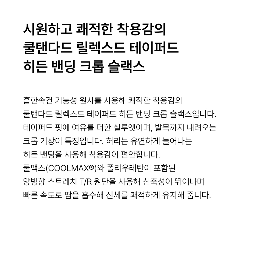 [쿨탠다드] 릴렉스드 테이퍼드 히든 밴딩 크롭 슬랙스 [블랙]