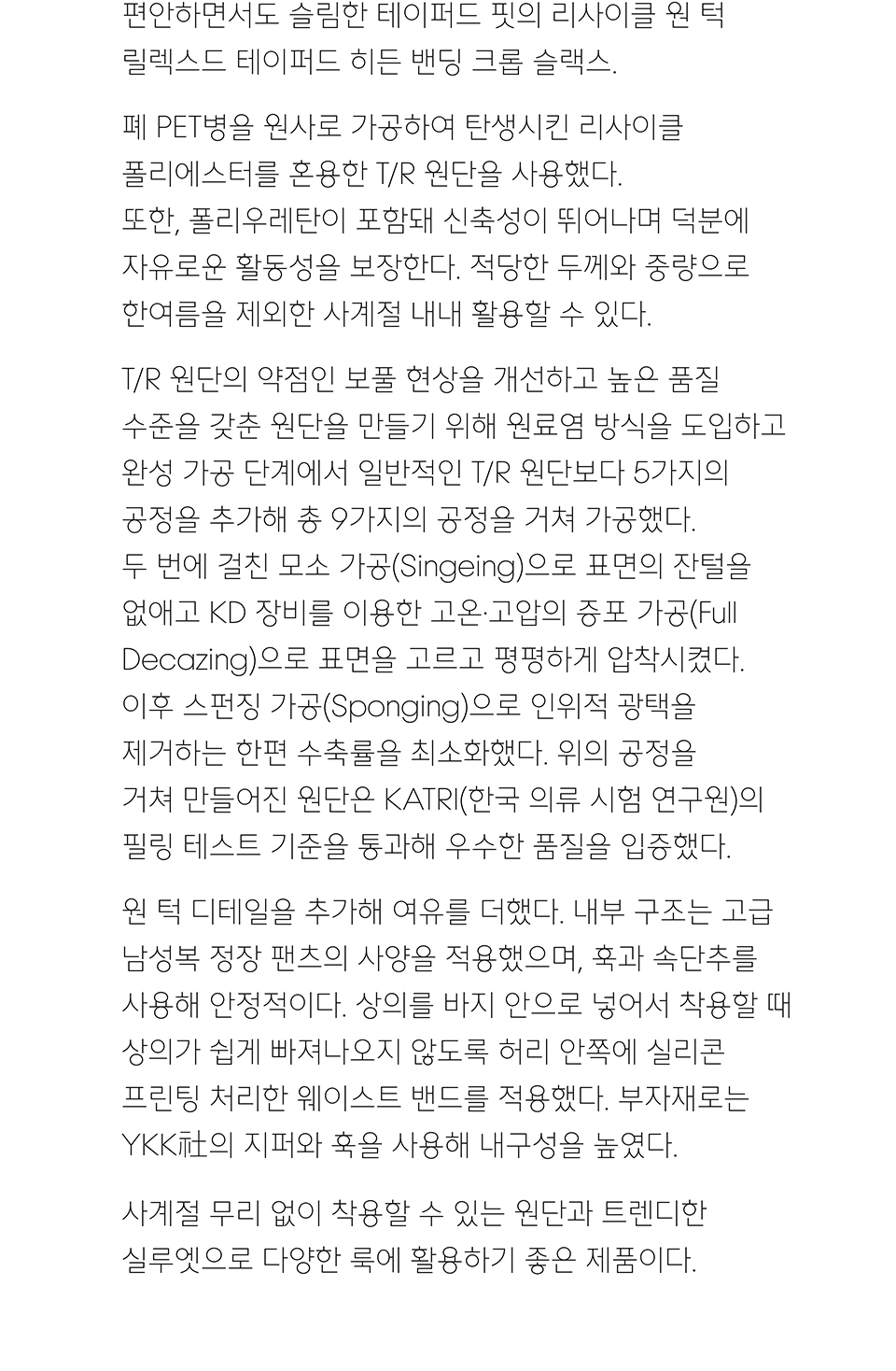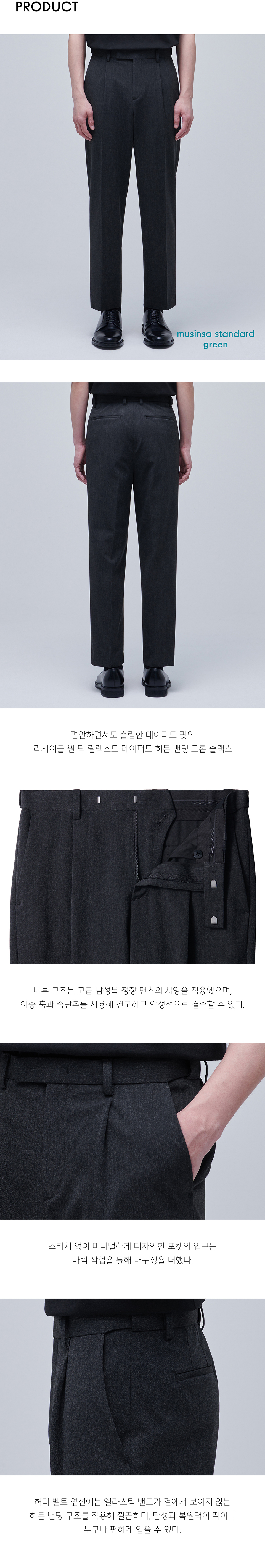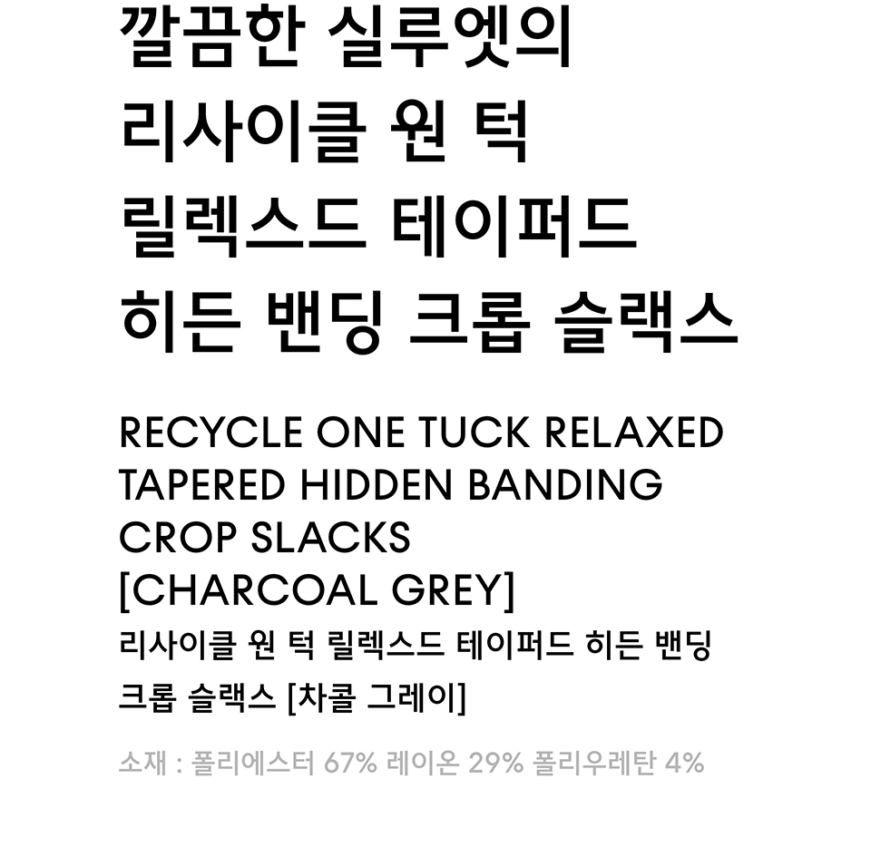 리사이클 원 턱 릴렉스드 테이퍼드 히든 밴딩 크롭 슬랙스 [차콜 그레이]