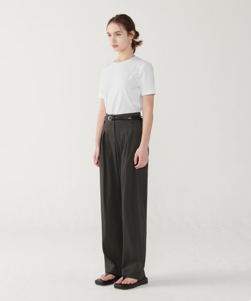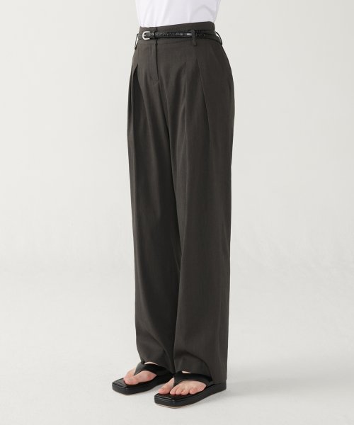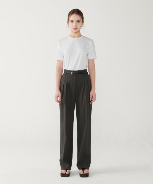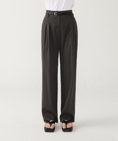 링클 크레이프 와이드 밴딩 팬츠 다크웜그레이