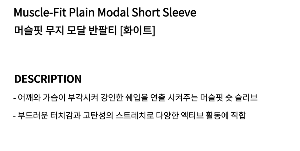 머슬핏 무지 모달 반팔티 [화이트]