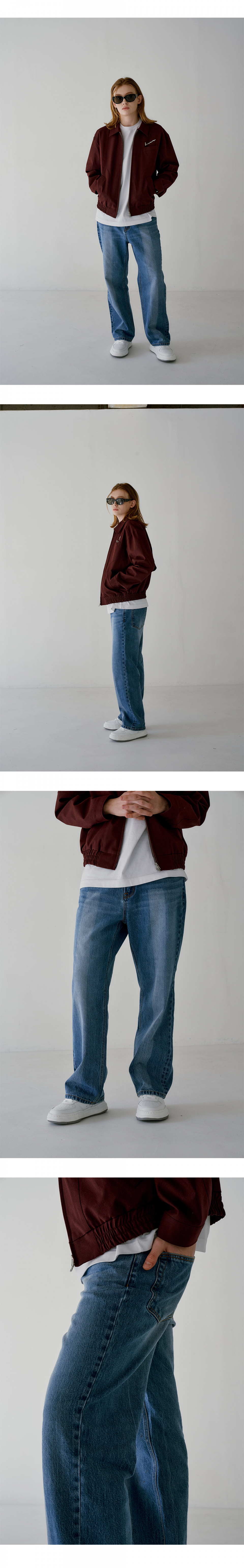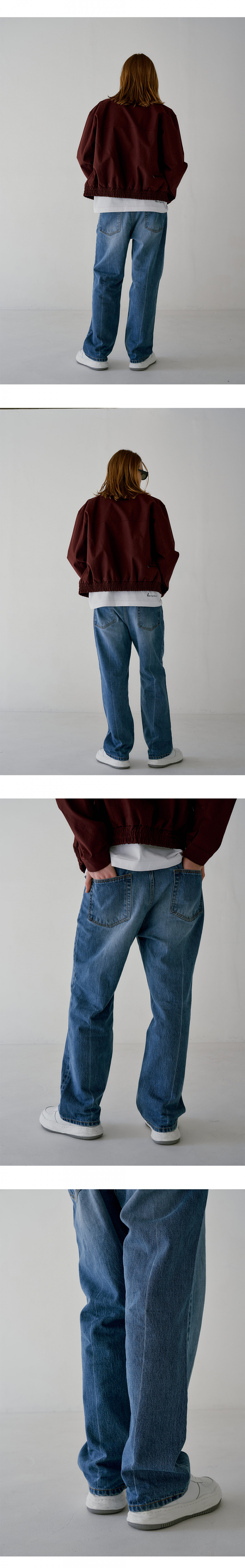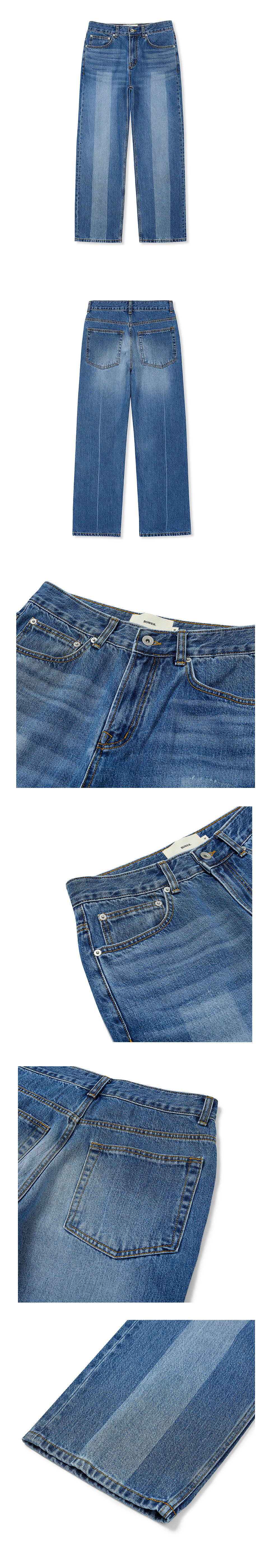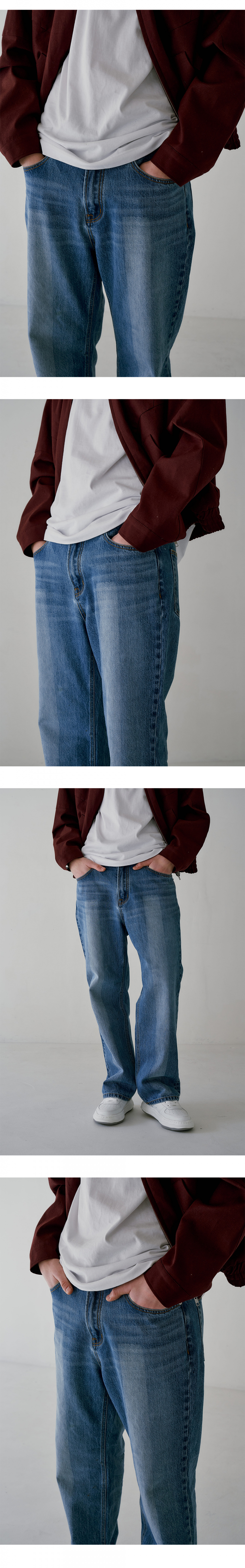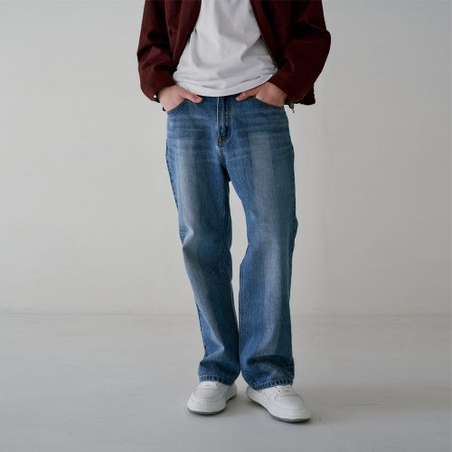 와이드 브러쉬 워싱 데님 미디엄 블루