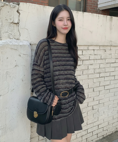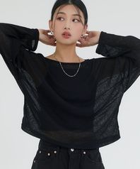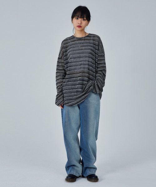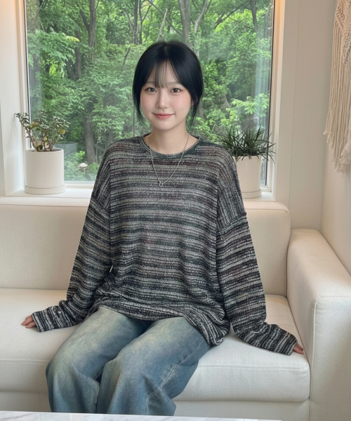 시스루 스트라이프 니트 롱 슬리브 블랙