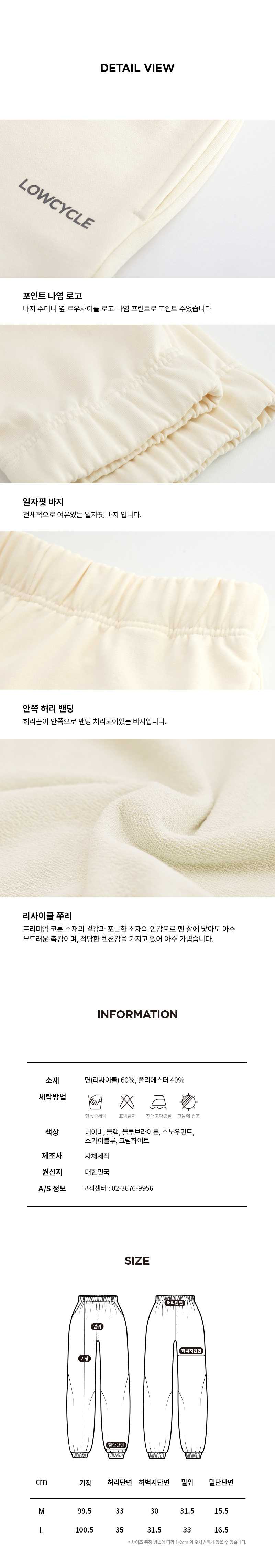 리사이클 쭈리 크림 화이트 트레이닝 조거팬츠
