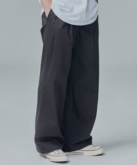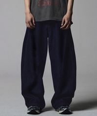 Linen Like Curved Semi Wide Denim Pants - Deep Indigo