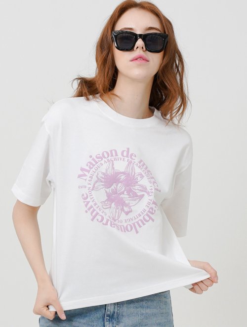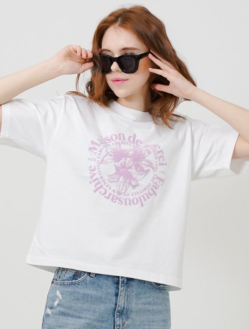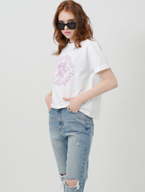 우먼즈 르리스 엠보 크롭티 화이트바이올렛(FCC2TS387W)