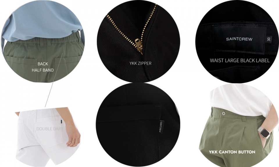 - 모던한 느낌의 세미와이드 쇼츠로 뒷면 양면밴드 부착되어 편안한 착용