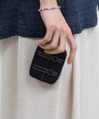 스웨이드 레더 파우치 카드지갑 - 블랙