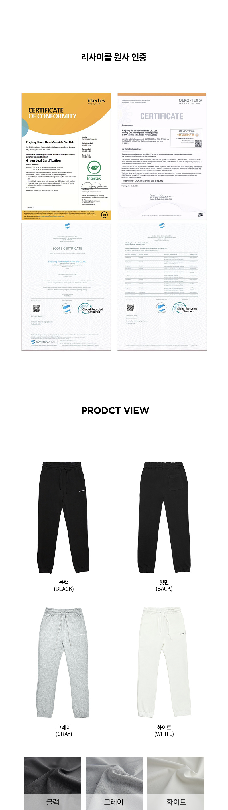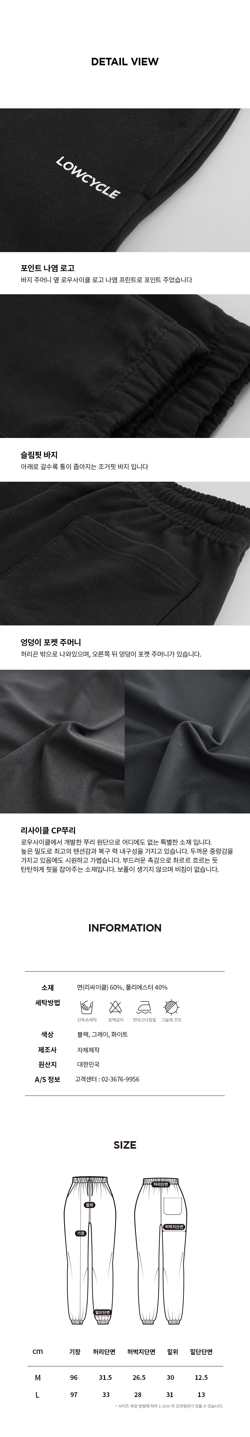 리사이클 씨피쭈리 화이트 조거팬츠 슬림핏