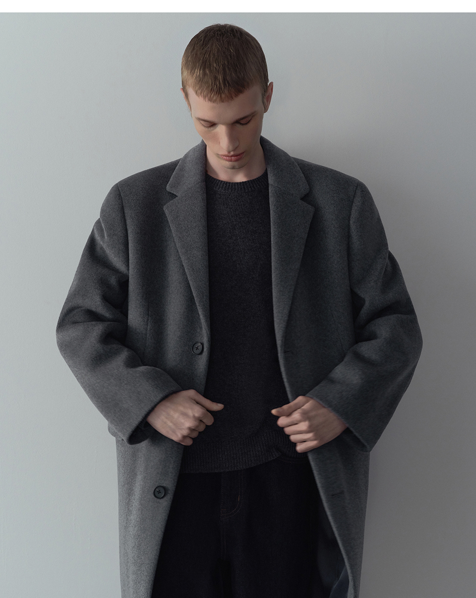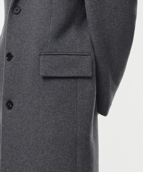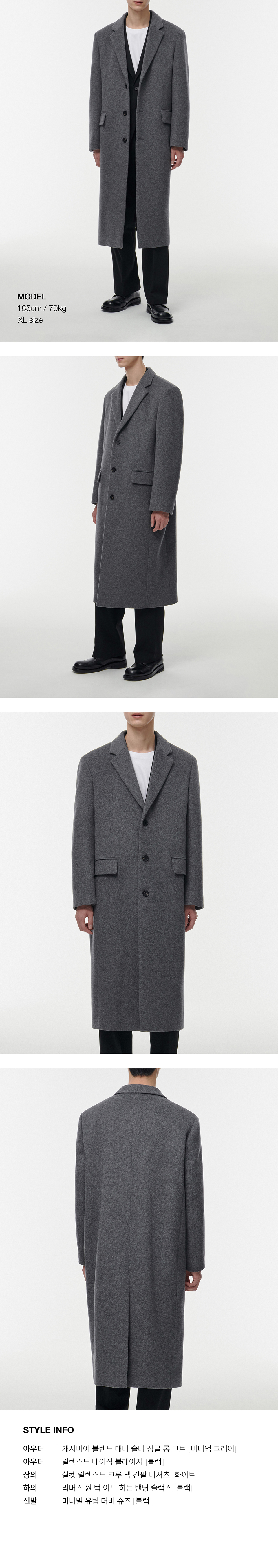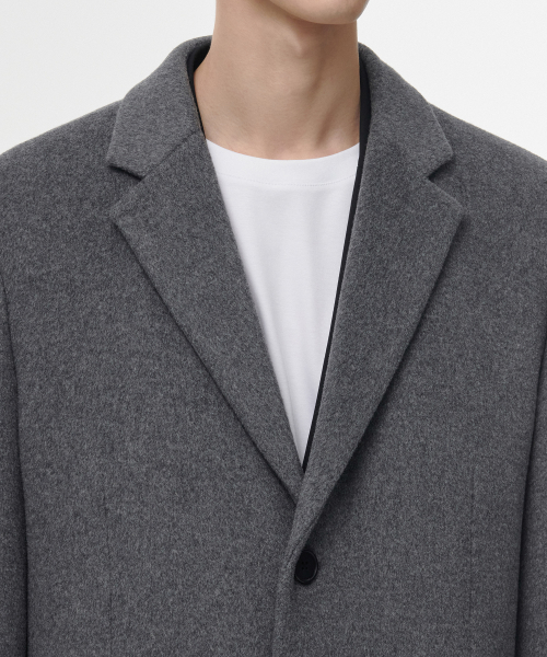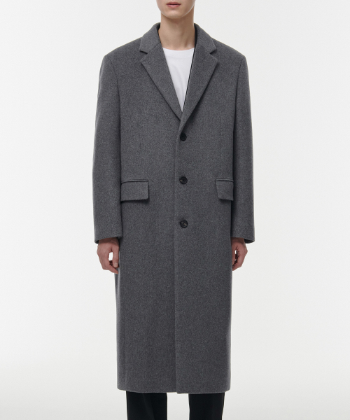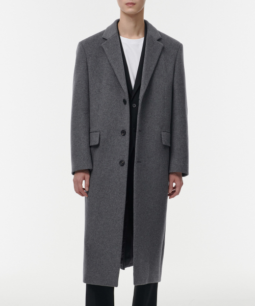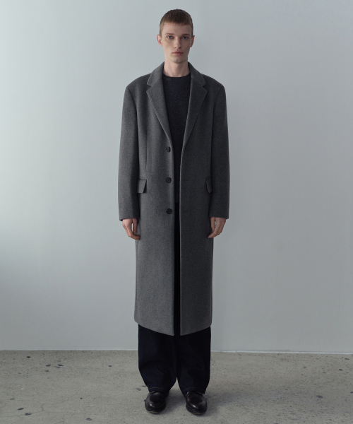 캐시미어 블렌드 대디 숄더 싱글 롱 코트 [미디엄 그레이]