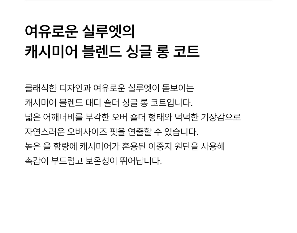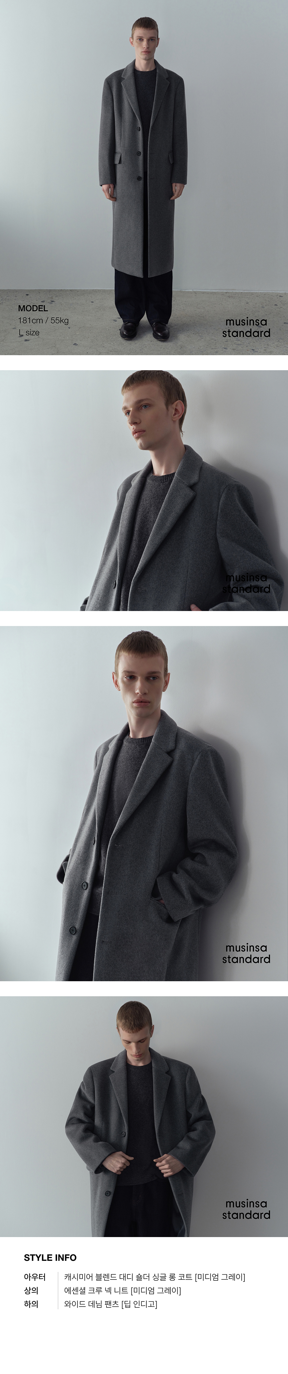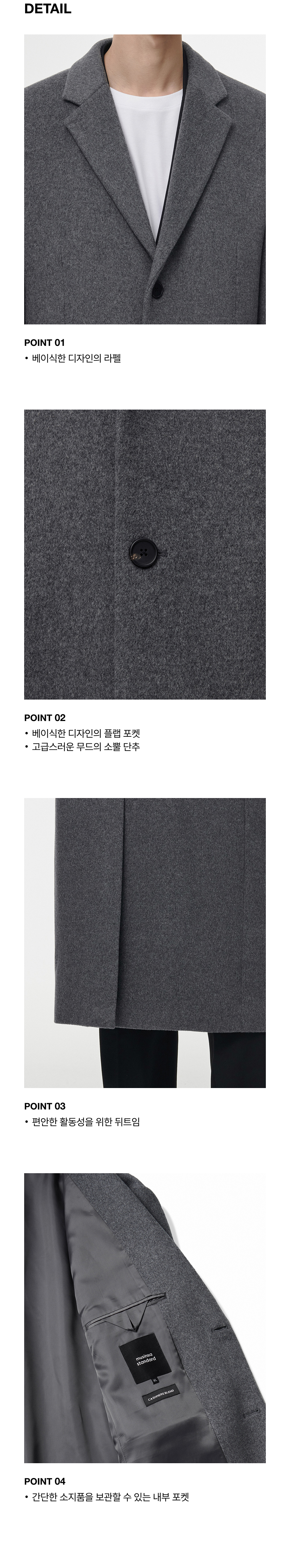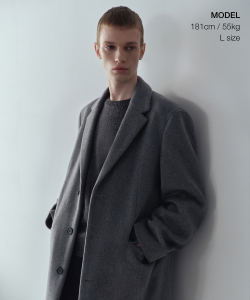 캐시미어 블렌드 대디 숄더 싱글 롱 코트 [미디엄 그레이]