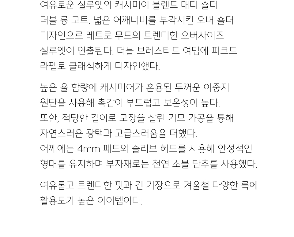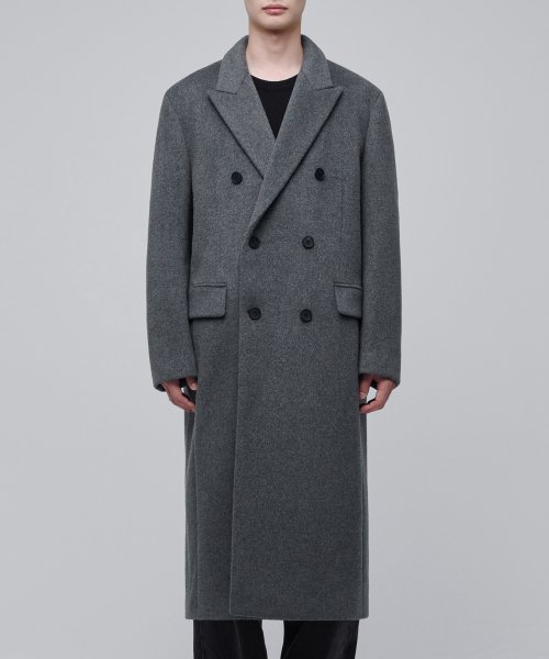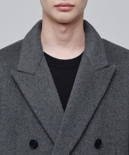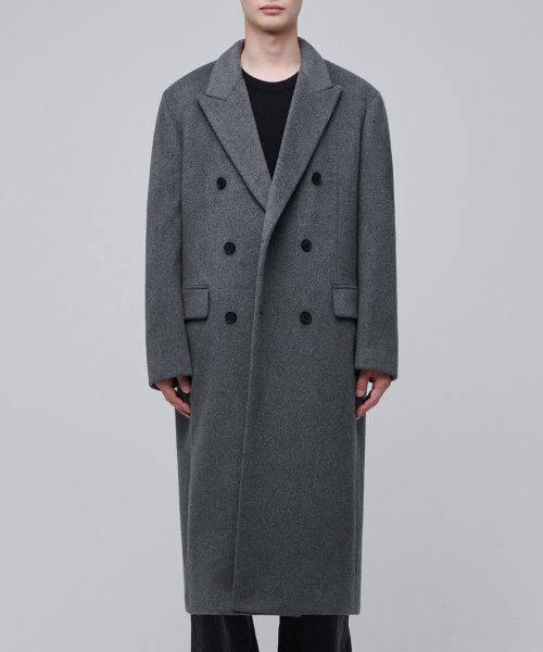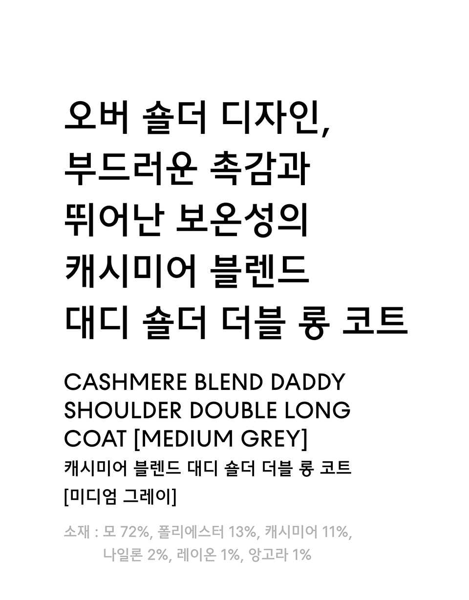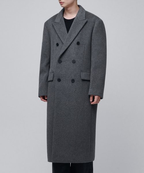 캐시미어 블렌드 대디 숄더 더블 롱 코트 [미디엄 그레이]