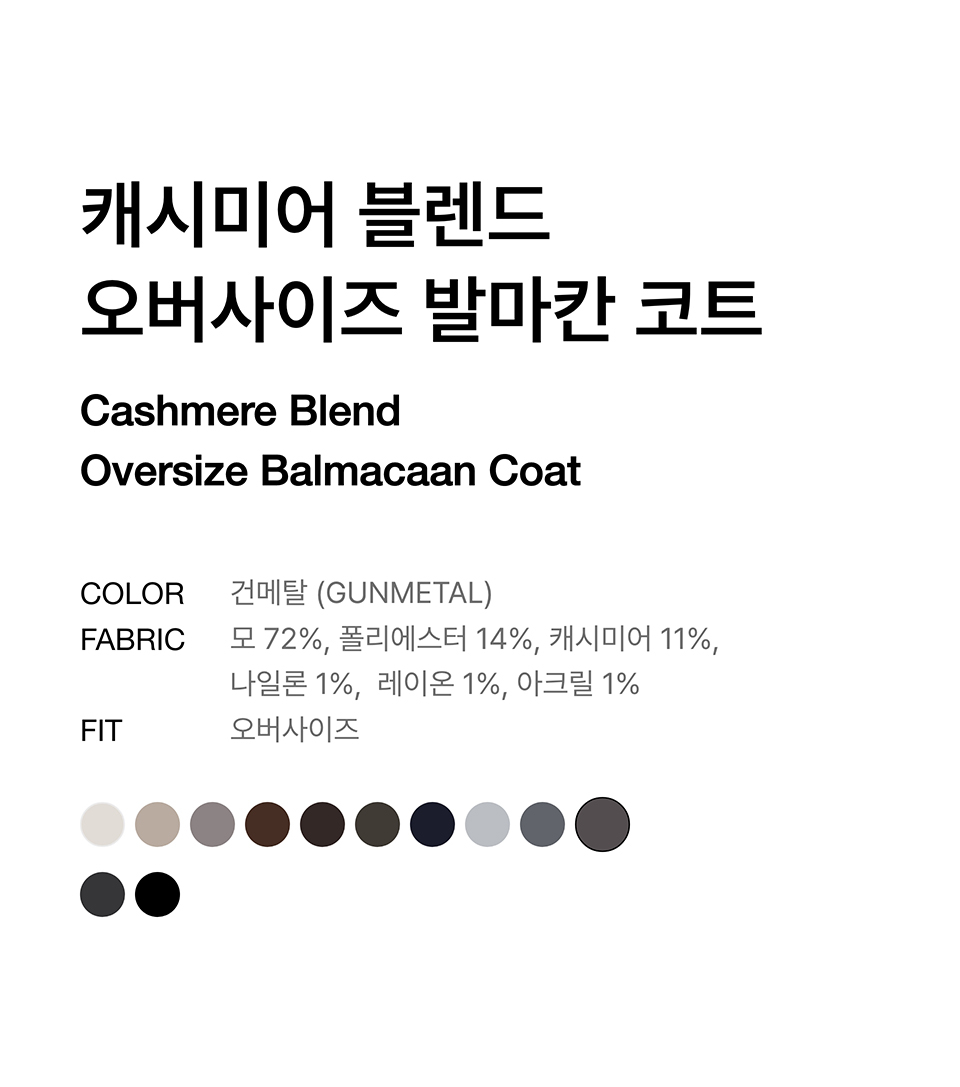 캐시미어 블렌드 오버사이즈 발마칸 코트 [건메탈]