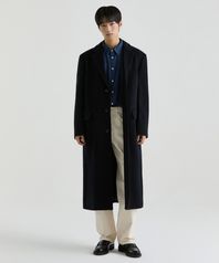 캐시미어 블렌드 대디 숄더 싱글 롱 코트 [네이비]