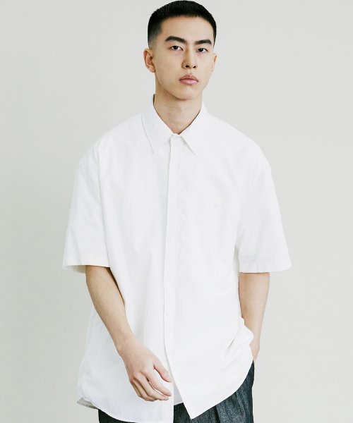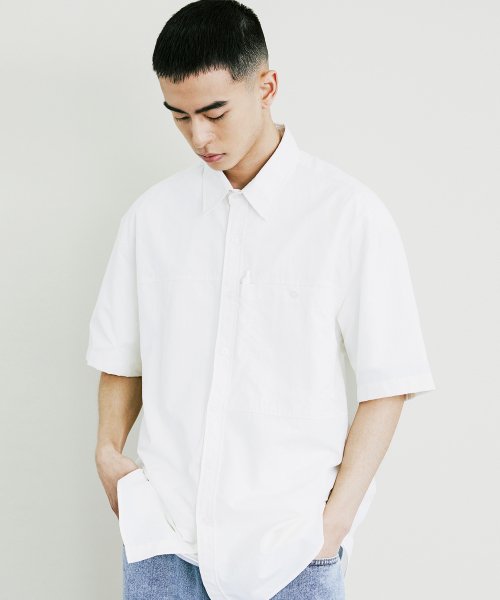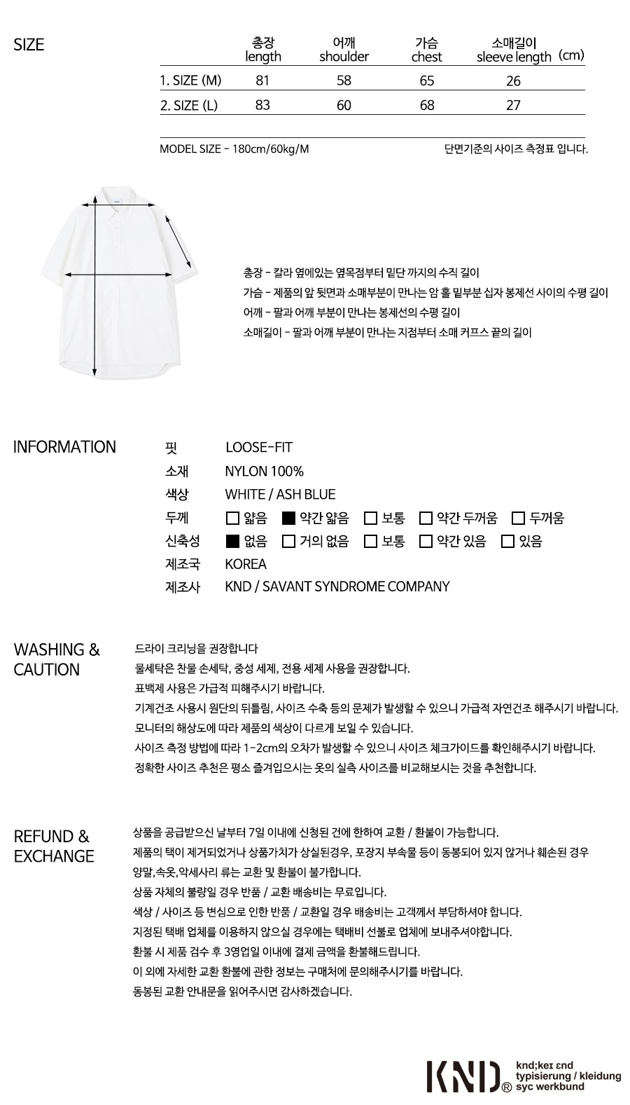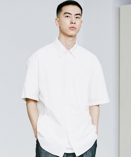 유틸리티 커브 포켓 루즈핏 옥스포드 하프 셔츠 스카이블루