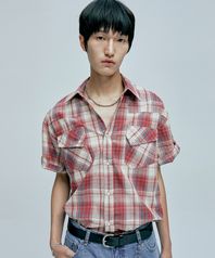 RTR 플래드 웨스턴 반팔셔츠 레드