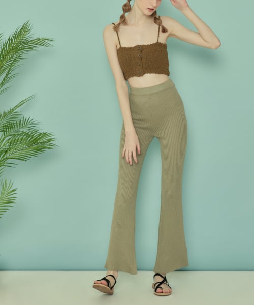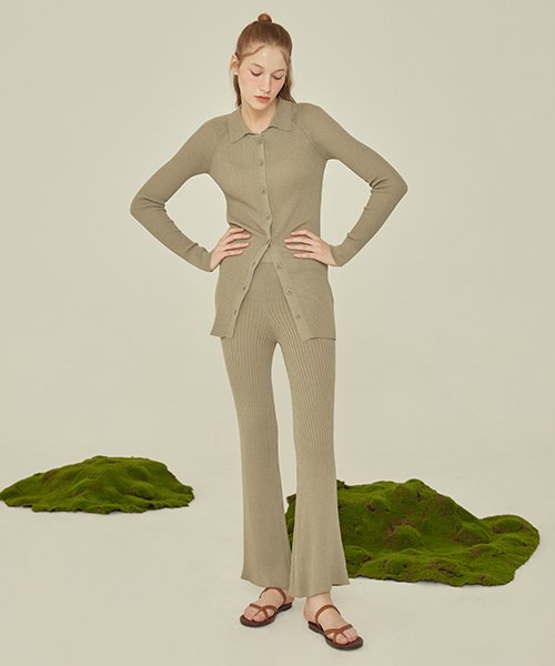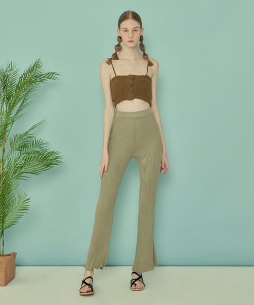 KNIT BOOTCUT PANTS_Olive