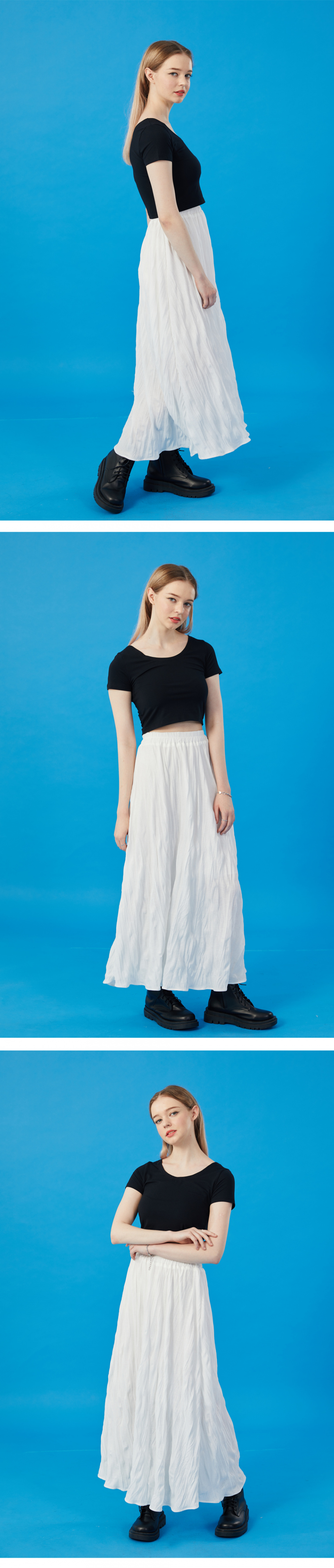 WOMEN 쿨링 냉장고 마몽 주름 플레어 롱스커트 [WHITE] 롱치마 ver.