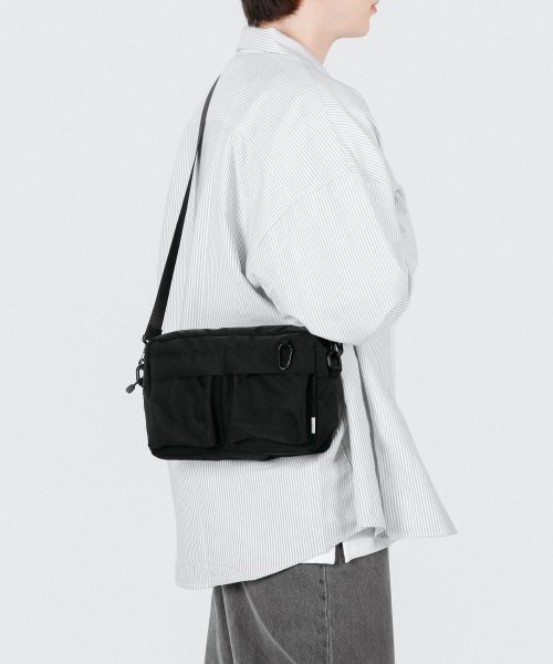 전면에는 2개의 스냅포켓이 있으며 블루투스이어폰, 화폐 등 작은아이템을 넣을수 있습니다.