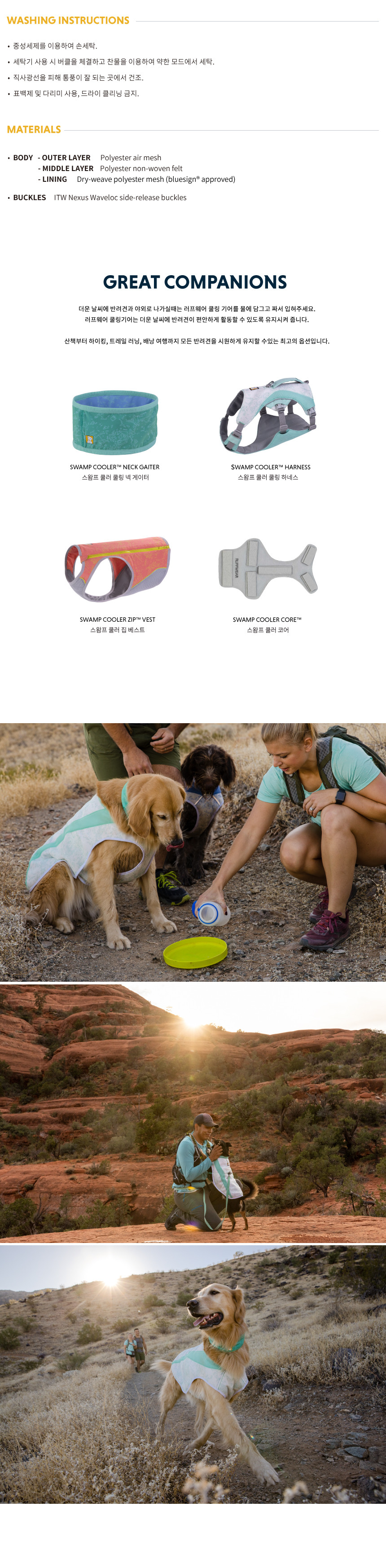 러프웨어(RUFFWEAR)는 그 이름만으로도 애견용품을 대표하는 최고급 브랜드로 미국 오리건주 밴드에 위치했습니다. 러프웨어의 철학은 개와 사람이 동료애를 느끼며 아웃도어 활동을 안전하고 편안하게 할 수 있는 최고급 아웃도어 애견용품을 만드는 것이며, 이를 위해 제품의 디자인, 소재를 그 목적에 맞게 설계/제작하고 있으며 지속적인 제품 개발을 통해 최고의 애견용품 업체로의 위상을 굳건해 하고 있습니다.