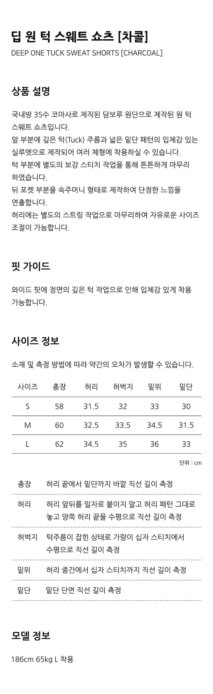 Deep One Tuck Sweat Shorts [Charcoal]
