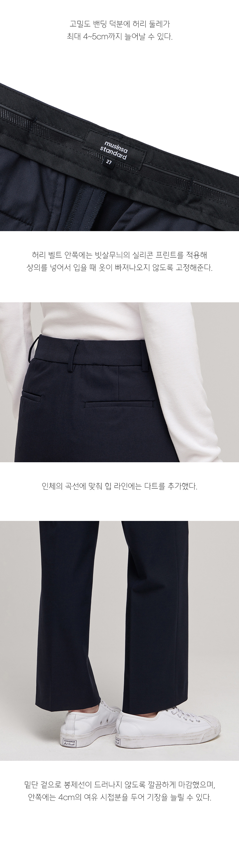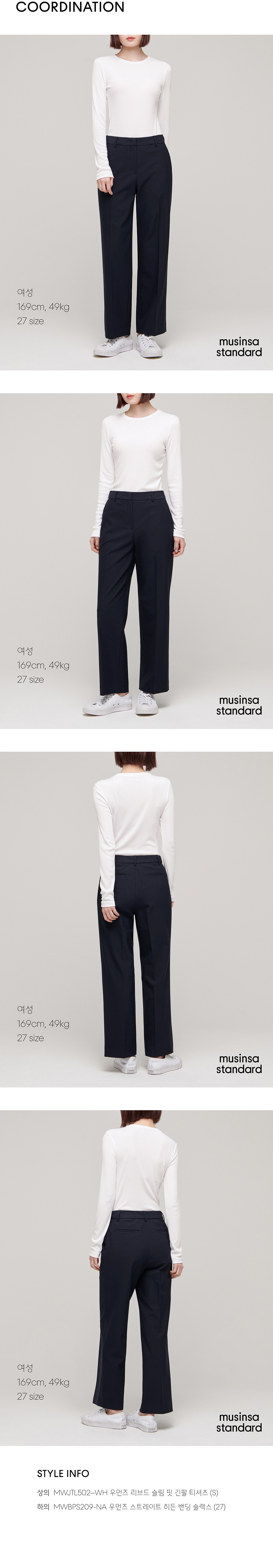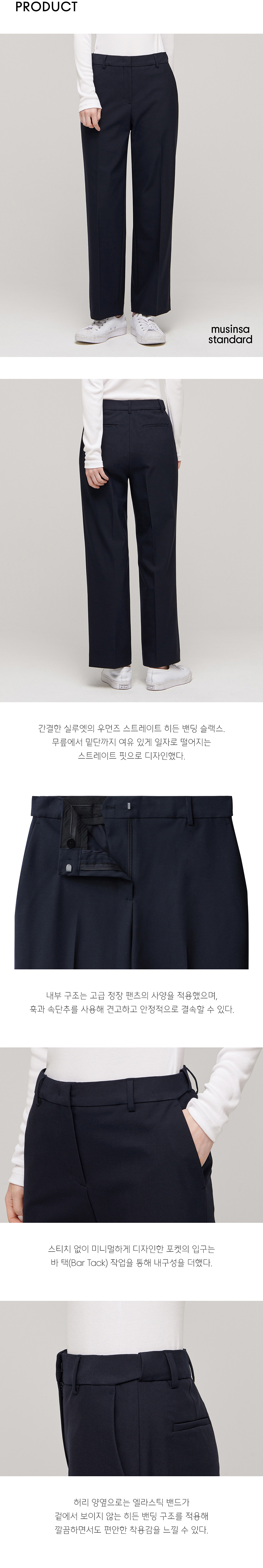 우먼즈 스트레이트 히든 밴딩 슬랙스 [네이비]
