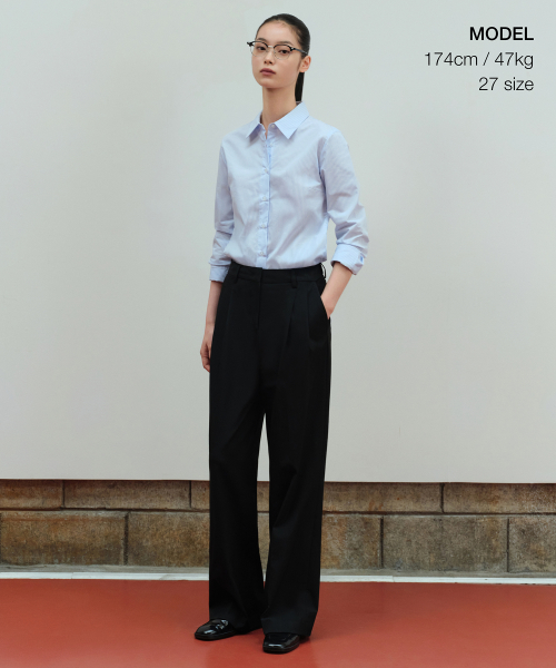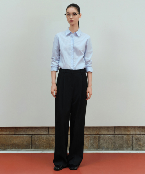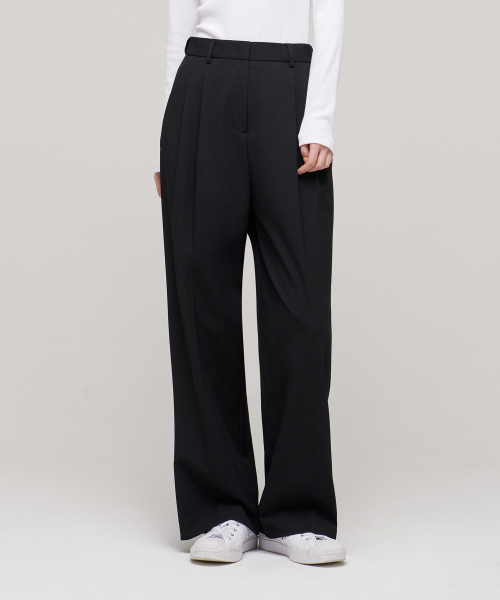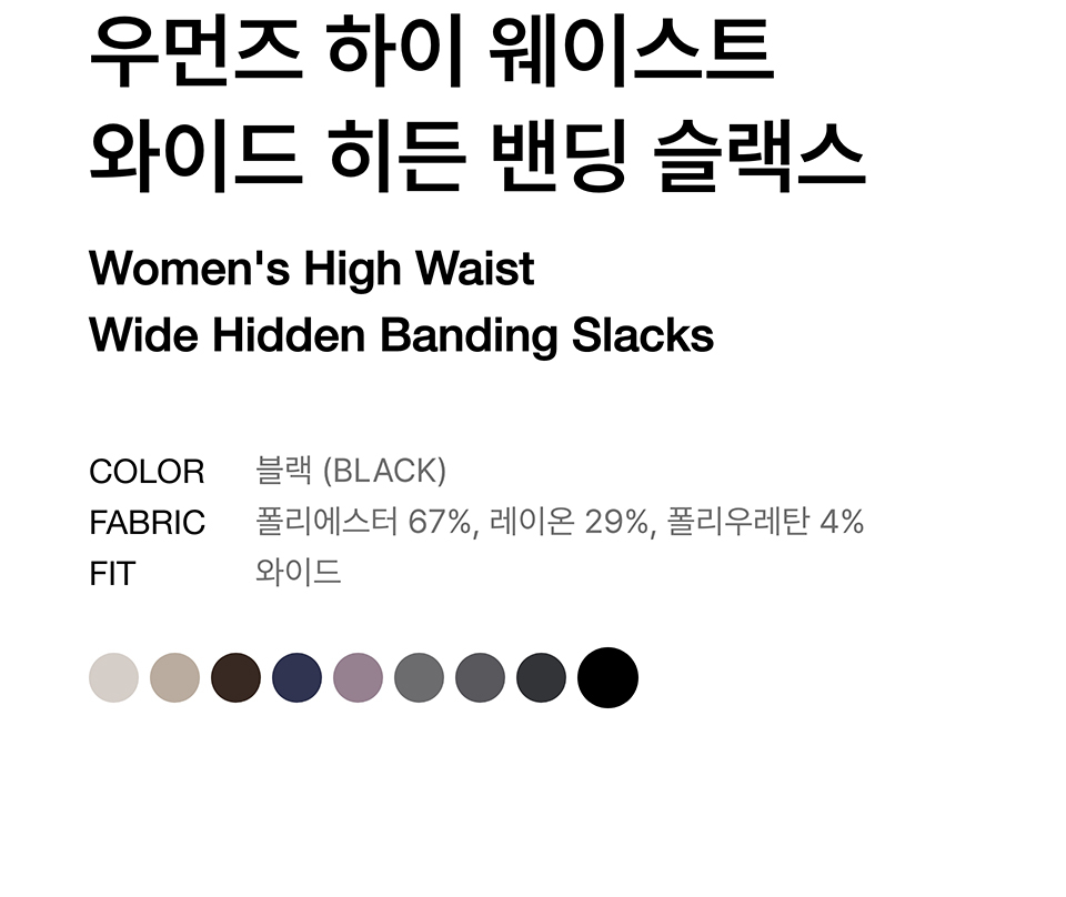 우먼즈 하이 웨이스트 와이드 히든 밴딩 슬랙스 [블랙]