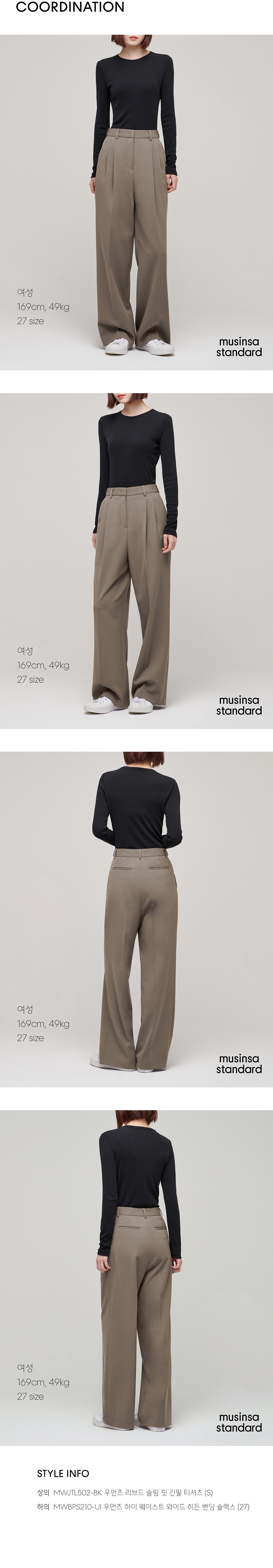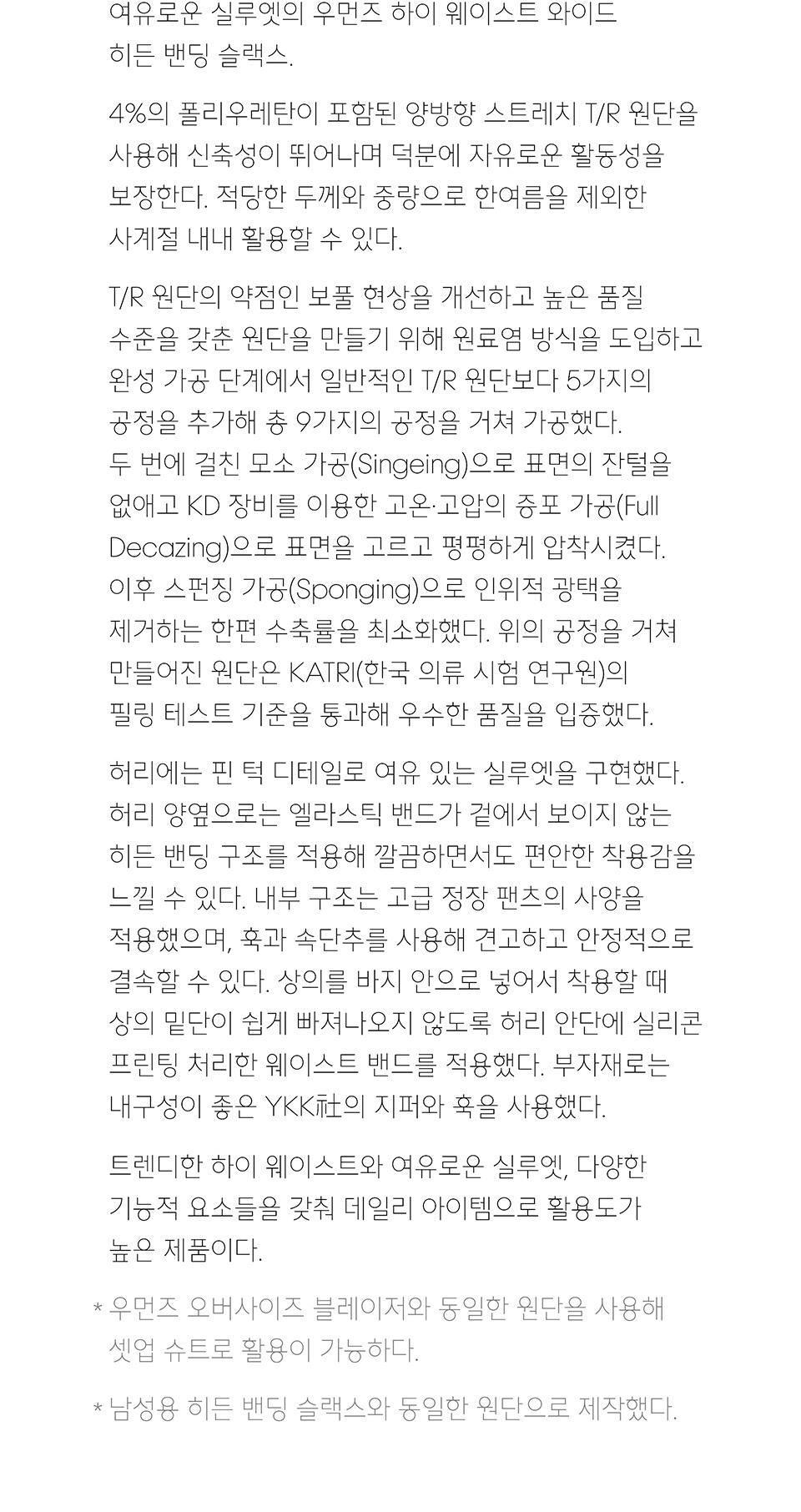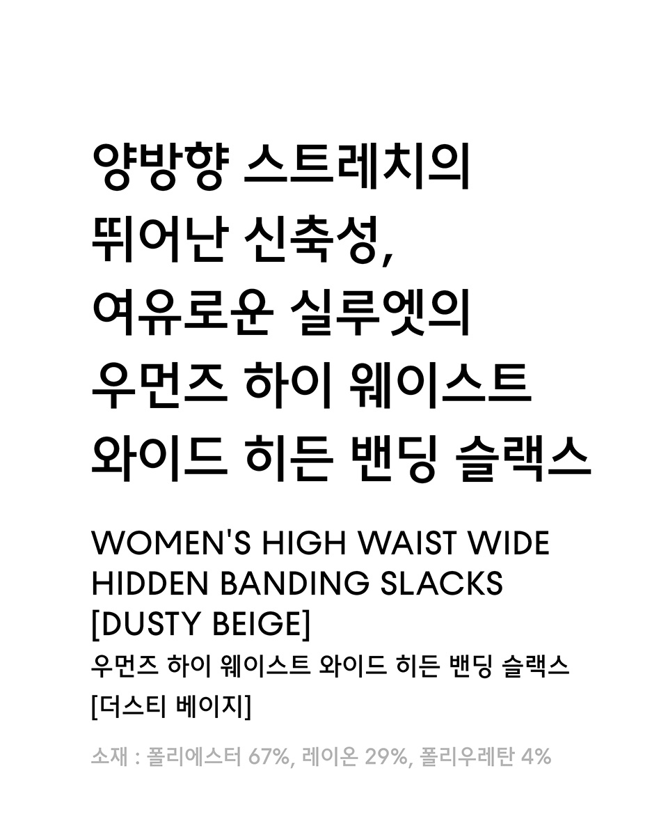 우먼즈 하이 웨이스트 와이드 히든 밴딩 슬랙스 [라이트 베이지]