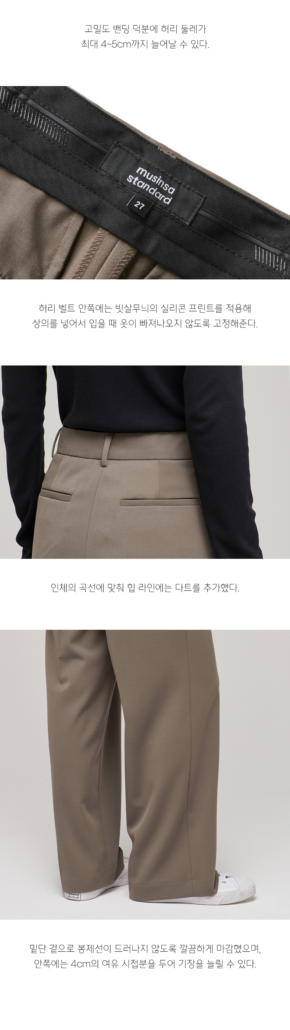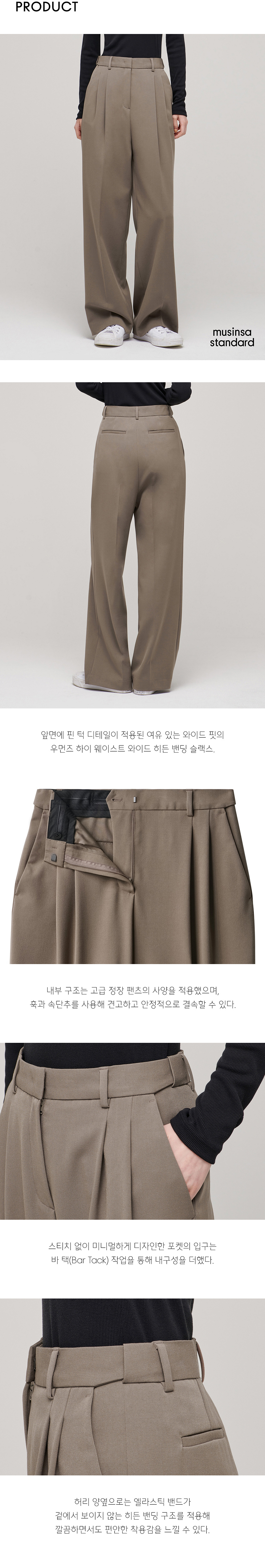 우먼즈 하이 웨이스트 와이드 히든 밴딩 슬랙스 [더스티 베이지]