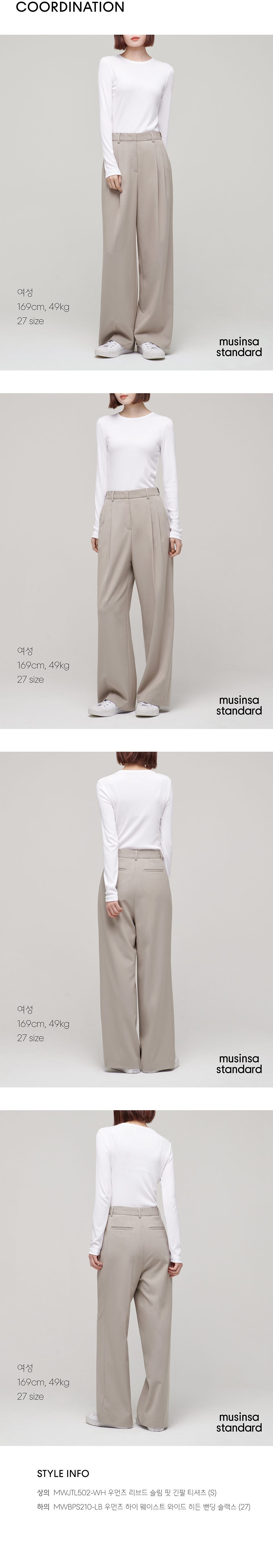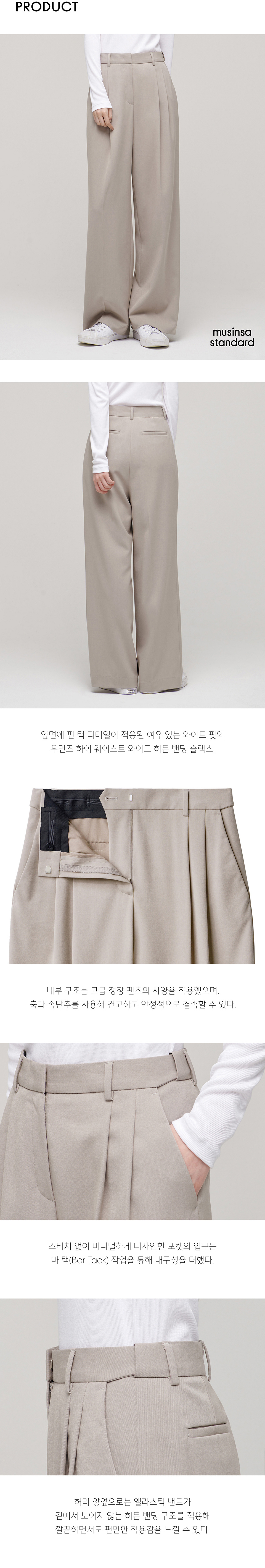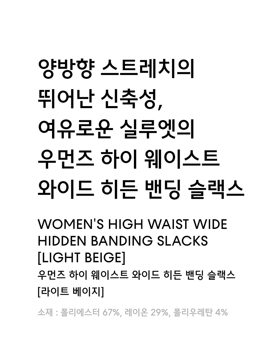 우먼즈 하이 웨이스트 와이드 히든 밴딩 슬랙스 [라이트 베이지]