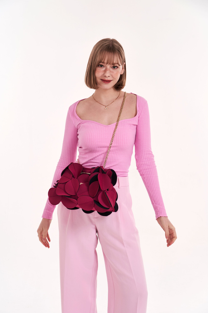네오프렌소재로 만들어진 꽃을 연상시키는 가방입니다.