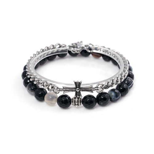 | · 커티드 블랙마노454 앤틱크로스881 써지컬스틸 체인 팔찌세트 |