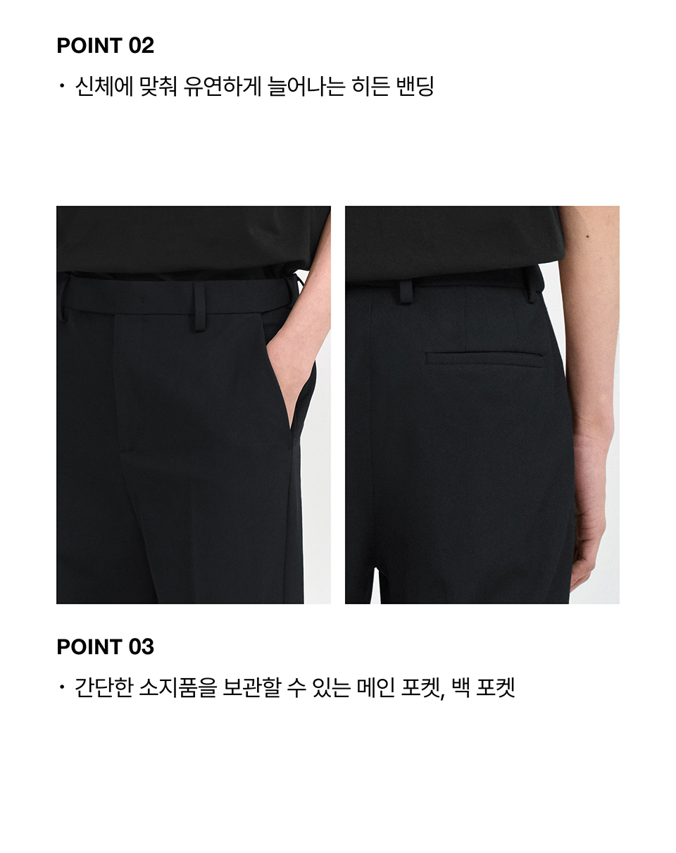 세미 와이드 히든 밴딩 슬랙스 [블랙]