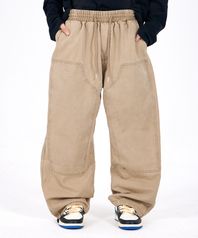 와이드 웨더링 워싱 밴딩 팬츠_베이지