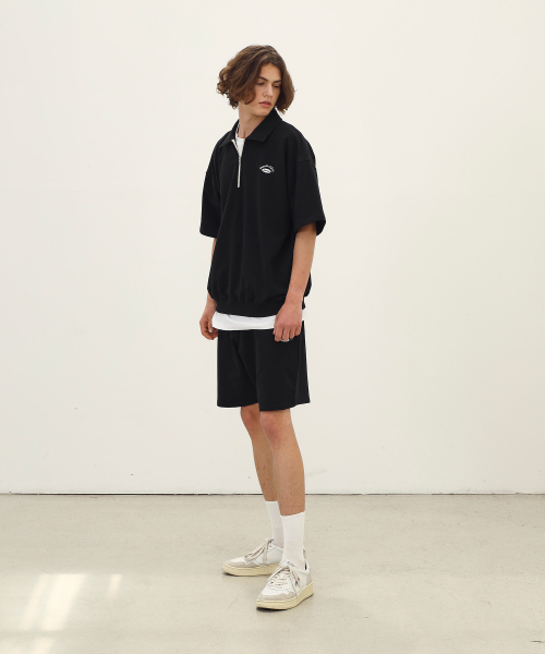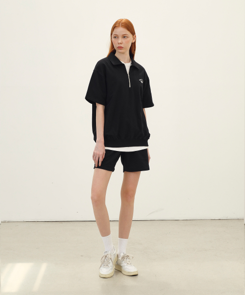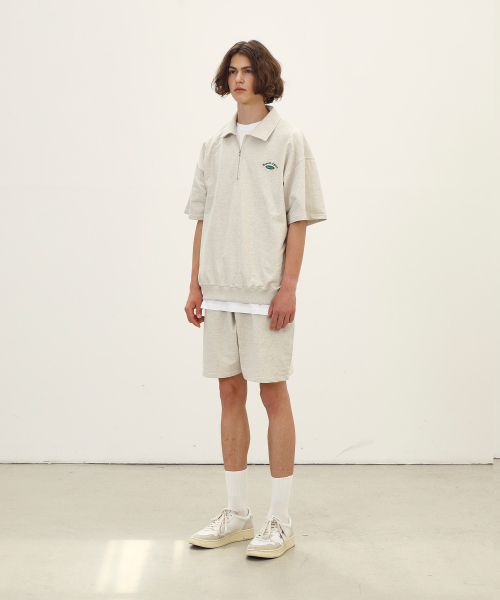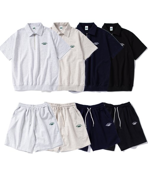하프 집업 반팔 스웻셔츠 쇼츠 세트 [4 Colors]