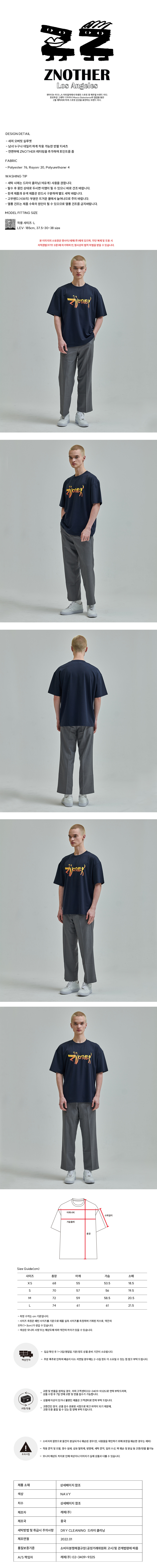 로고 레터링 티셔츠 네이비