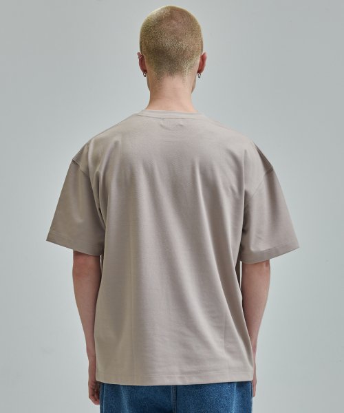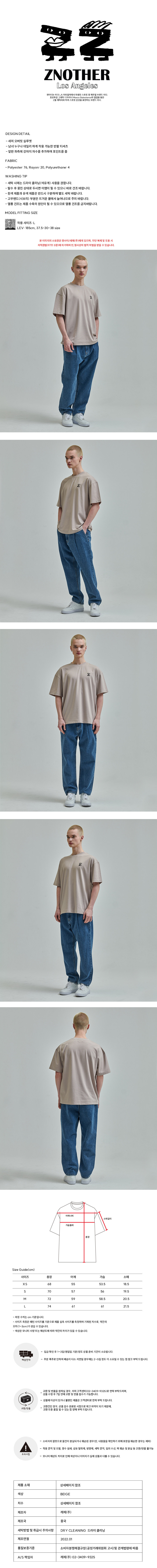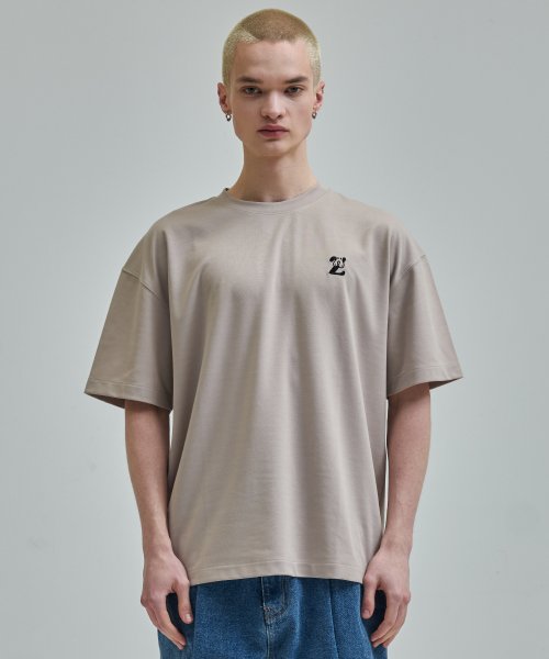 강아지 로고자수 티셔츠 베이지