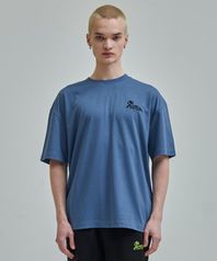 강아지 로고자수 티셔츠 블루