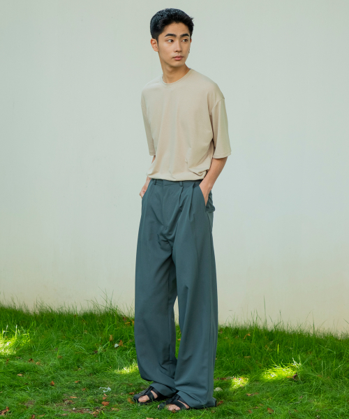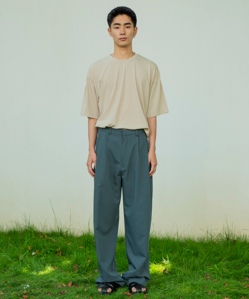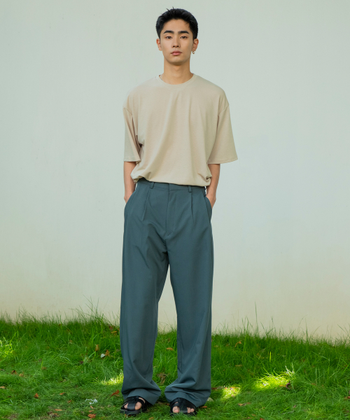사이드 딥 원턱 슬랙스[블랙스트라이프]