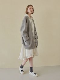 Hooded Frill Long Dress - Ivory (기모버젼)